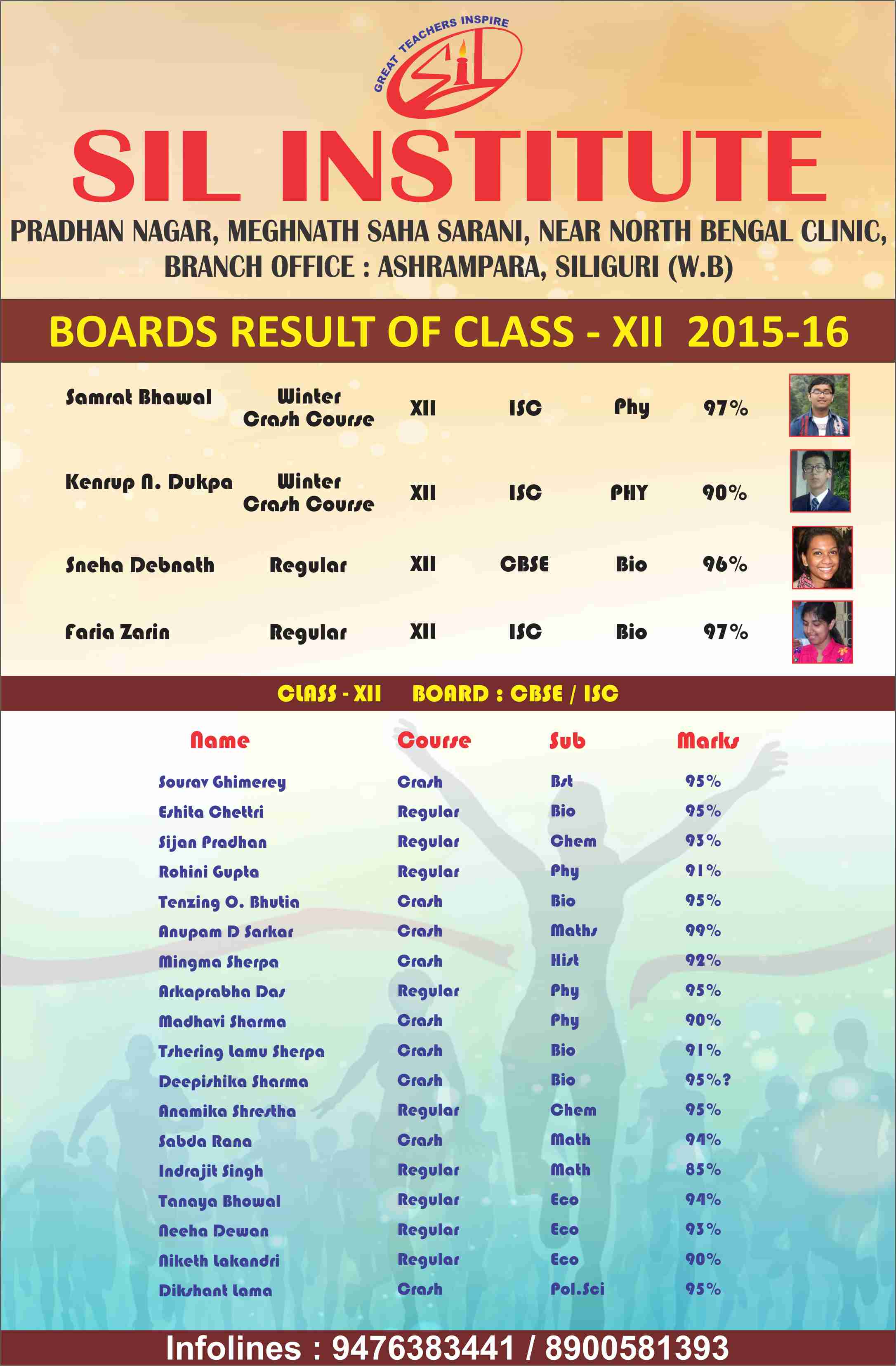 Boards Result of Class XII 2015 & 2016